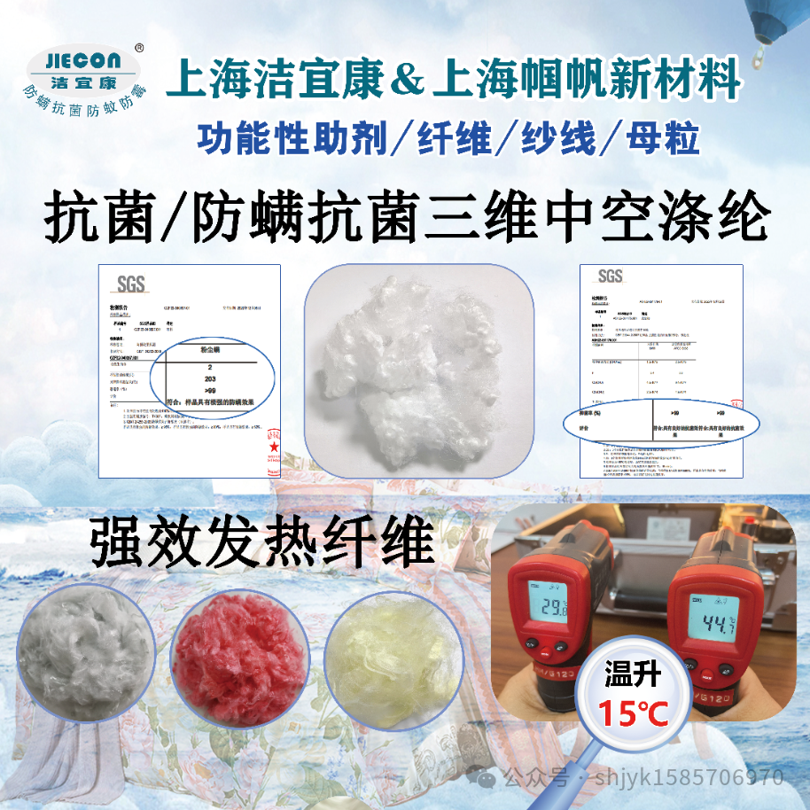 The company mainly operates functional fibers/synthetics, functional additives and functional masterbatches applicable to the textile industry. Among them, antibacterial polyester masterbatch, antibacterial nylon masterbatch, as well as antibacterial acrylic and viscose fiber additives have been produced and sold in batches; functional fibers/synthetics mainly include: moisture-wicking heating fibers (cooling fibers), antibacterial acrylic/ polyester/nylon/viscose, light-absorbing heating acrylic, anti-mite and antibacterial polyester/nylon/viscose, anti-mosquito polyester/nylon; among them, antibacterial polyester fibers/synthetics, antibacterial nylon fibers/synthetics, anti-mite antibacterial hollow fibers of polyester, cooling fibers and light-absorbing heating fibers have been developed and sold as a series.