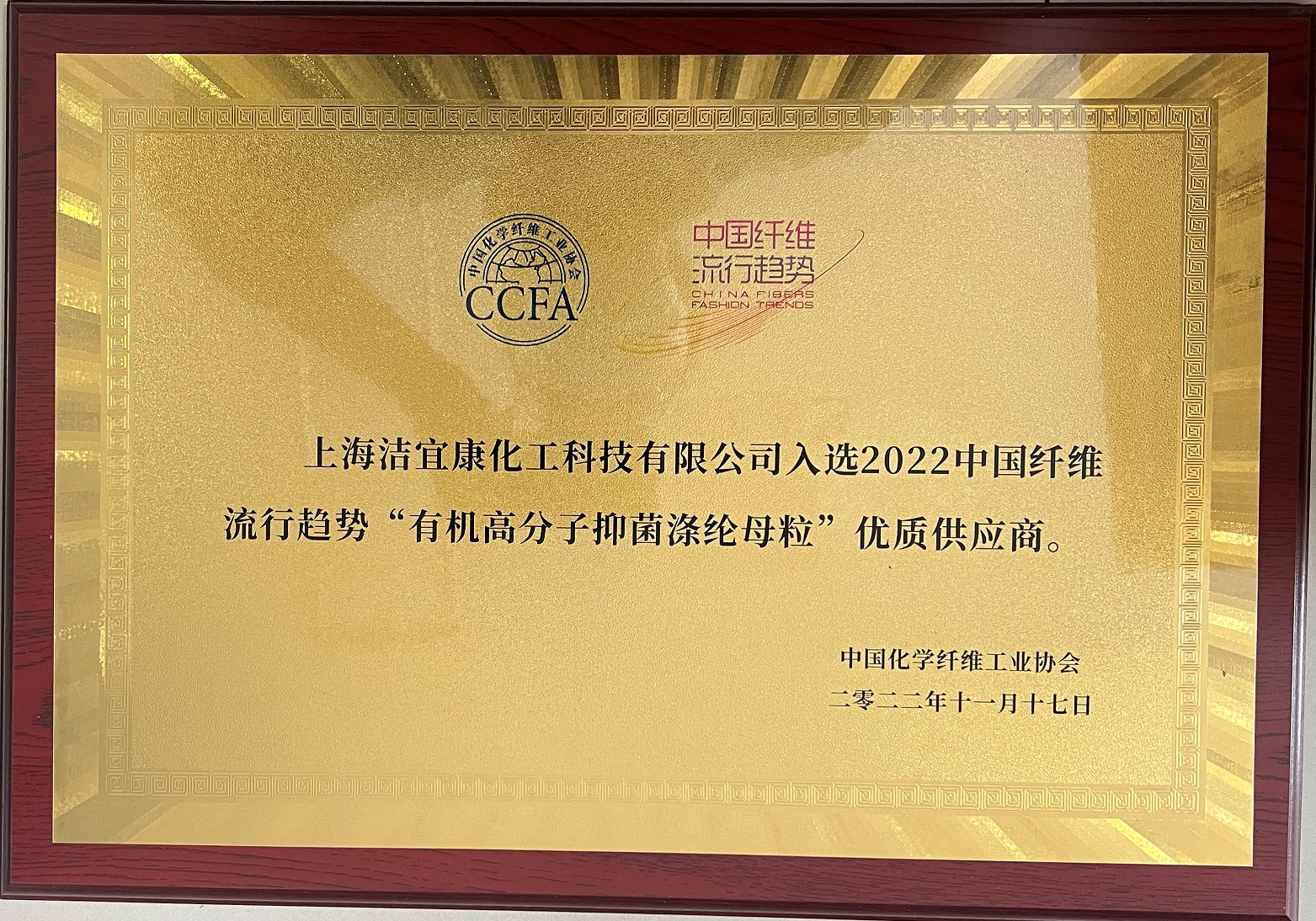 5、上海潔宜康公司は中國の繊維の流行の「有機高分子制菌ポリエステル母粒」の優良サプライヤーに選ばれました。