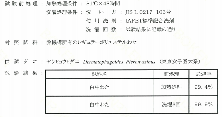 2、防螨抗菌滌綸中空短纖維制成的絮片,抗菌性能達(dá)到各種標(biāo)準(zhǔn)的要求;經(jīng)日本標(biāo)準(zhǔn)JIS L 1920《纖維制品的防螨性能測試方法》測試,能達(dá)到該標(biāo)準(zhǔn)的要求;