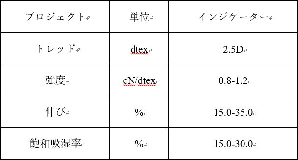 現在、舒熱絲® ファイバーの仕様は次のとおりです。