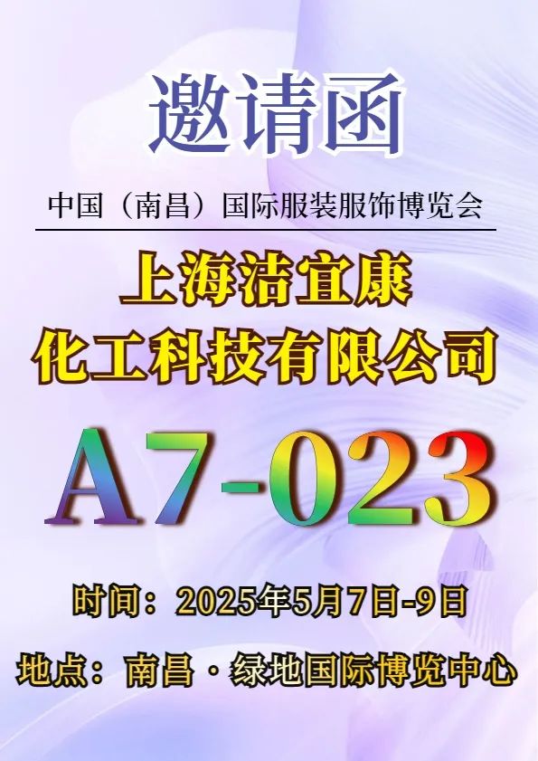 2025年5月7日至9日,中國(南昌)國際服裝服飾博覽會(簡稱“南昌服博會”)在南昌綠地國際博覽中心盛大啟幕。上海潔宜康化工科技有限公司(以下簡稱“上海潔宜康”)與上海幗帆化工新材料有限公司(以下簡稱“上海幗帆”)攜多款自主研發的功能性材料與解決方案亮相,與全球50余個國家和地區的800余家企業共繪時尚產業新圖景。